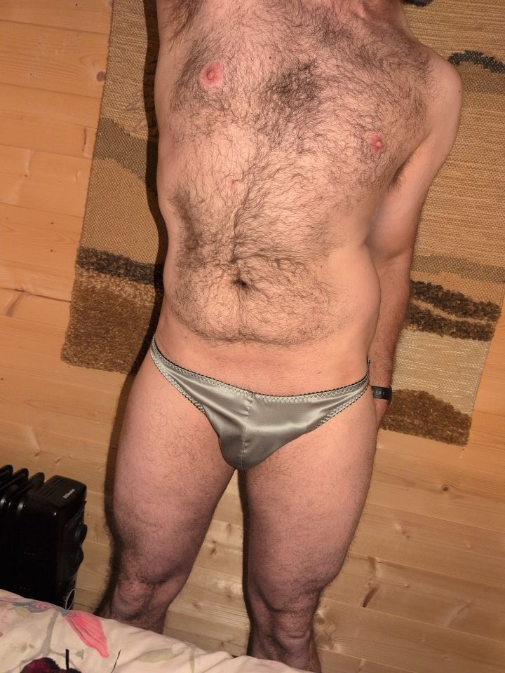 Me milking cum onto her satin lingerie ready for her to wear later. I love rubbing my cock on her panties it always feels amazing.